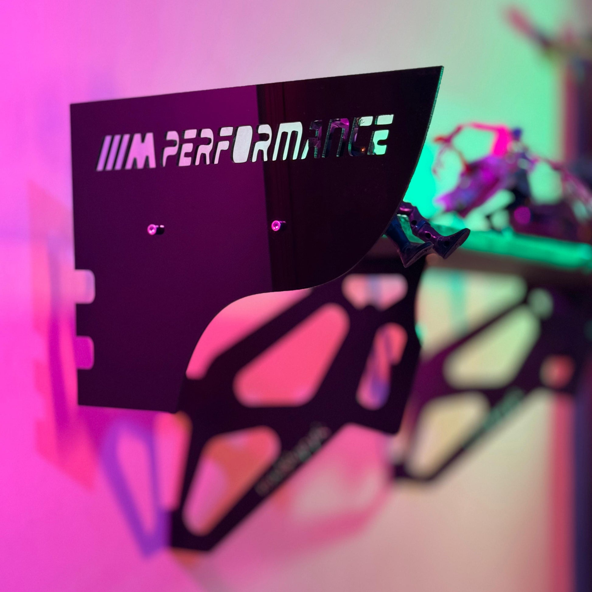 - 1 M_PERFOMANCE -Style Wall Shelf (Wood Panel + Steel Mounts with Engraved Branding + Acrylic Wings + Hardware, including L-key and bolts)